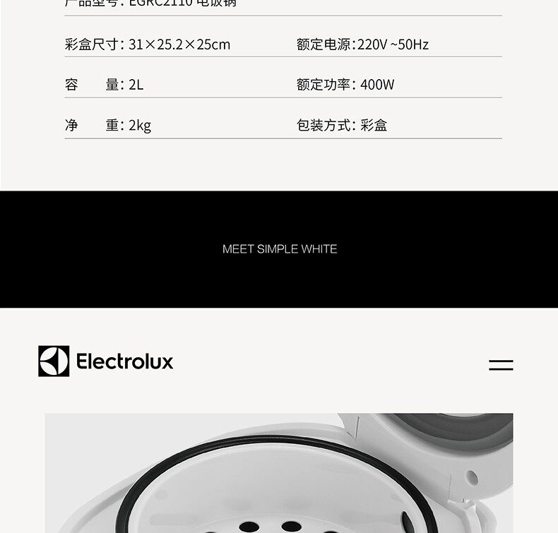 商品名称:伊莱克斯 电饭煲 EGRC2110 2L