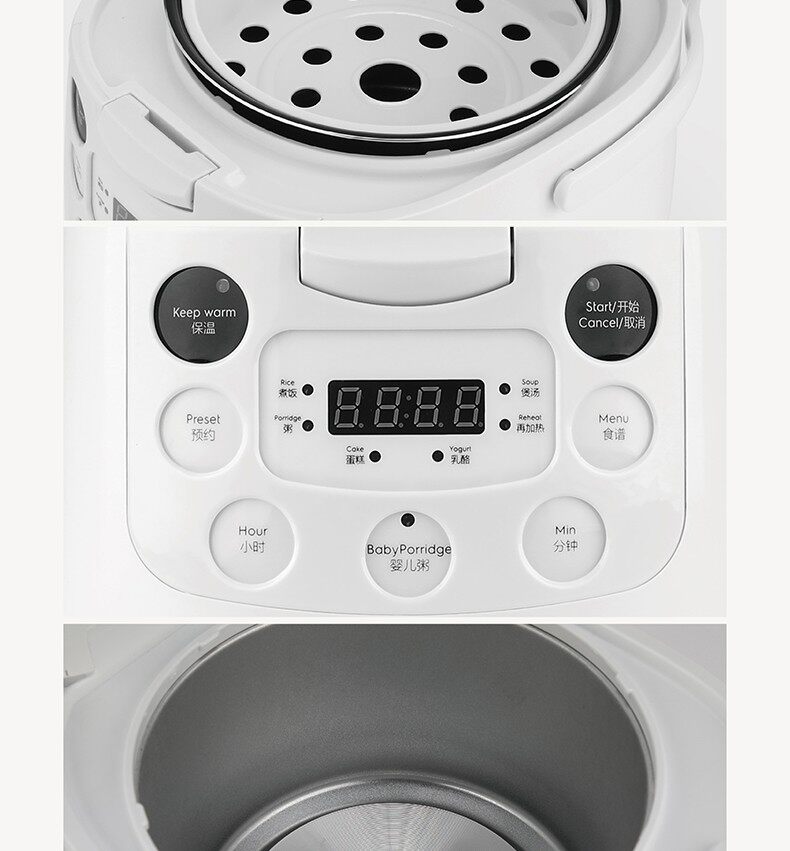 电饭煲多功能 :寿司饭,快速饭,柴火饭,热饭,煮粥,煲仔饭,煲汤,石锅饭,稀饭,糙米饭,蒸煮,蛋糕,锅巴饭,酸奶,煮饭,无水无油炖肉炖菜,杂粮,烘烤,杂粮饭
