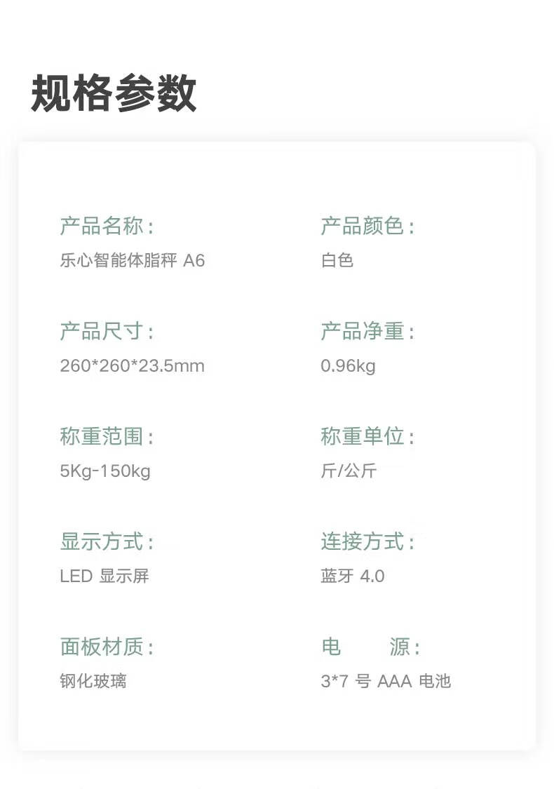 商品名称:乐心 智能体脂秤 A6