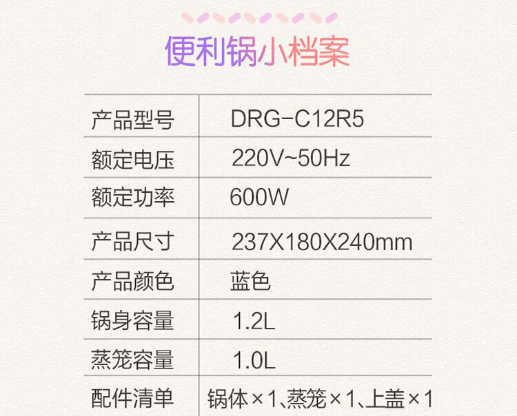商品名称:小熊 电热锅 DRG-C12R5 1.2L