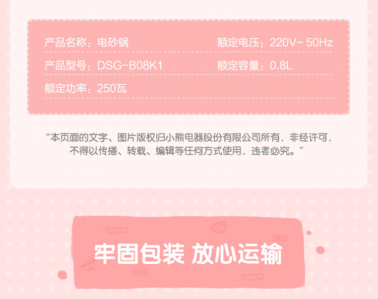 商品名称:小熊(Bear)电砂锅 DSG-B08K1 0.8L