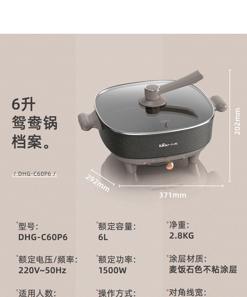 商品名称:小熊(Bear) 电火锅 DHG-C60P6 6L