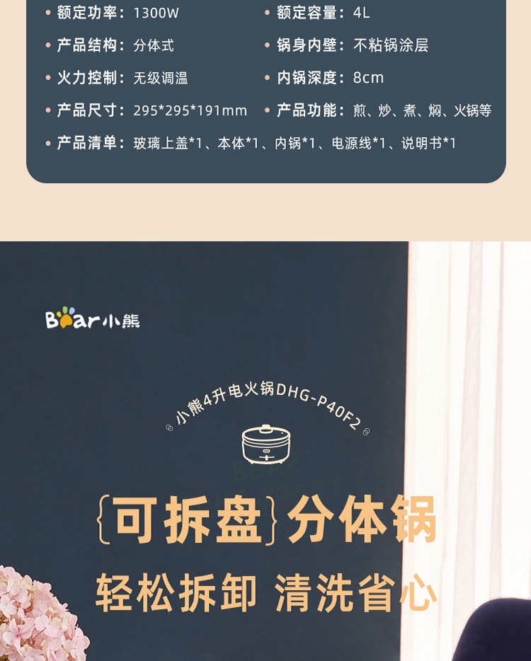 商品名称:小熊(Bear)电火锅 4L DHG-P40F2