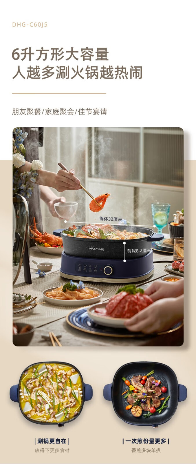 小熊(Bear) 电火锅分体单锅 DHG-C60J5 6L