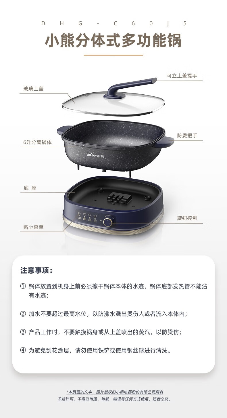 商品名称:小熊(Bear) 电火锅分体单锅 DHG-C60J5 6L