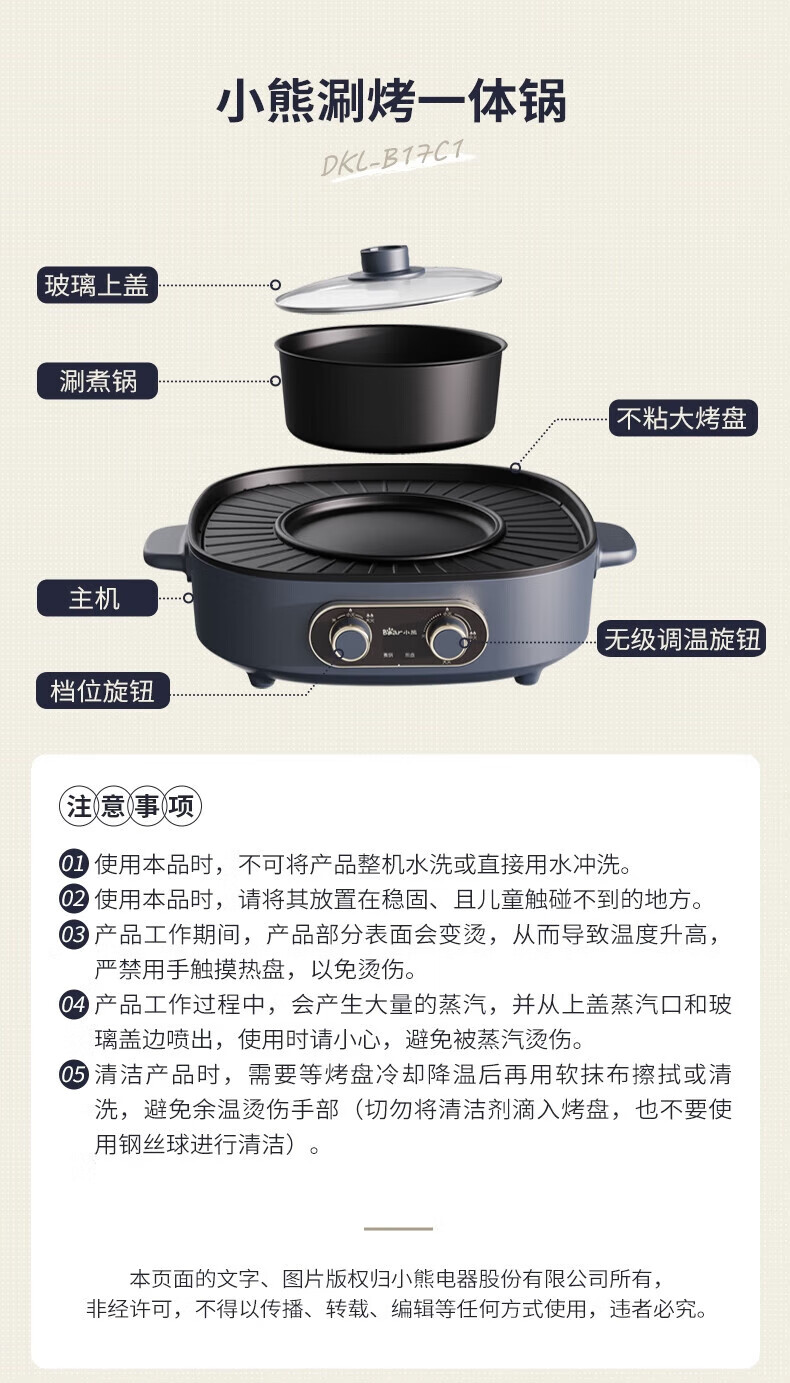 商品名称:小熊(Bear)电烧烤炉 DKL-B17C1