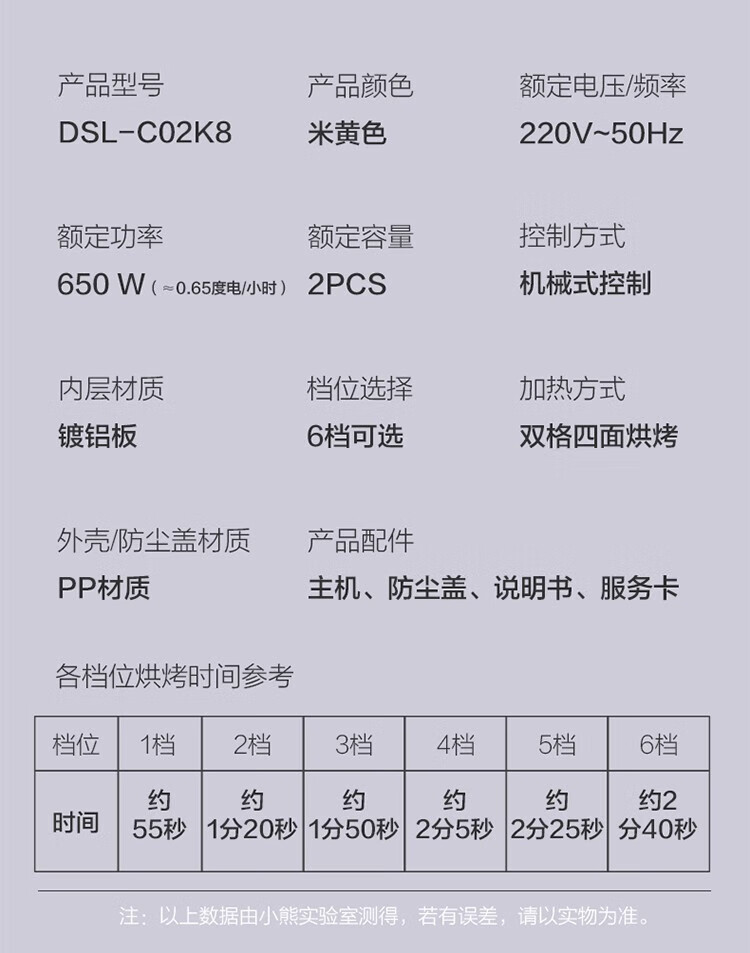商品名称:小熊(Bear)多士炉 DSL-C02K8