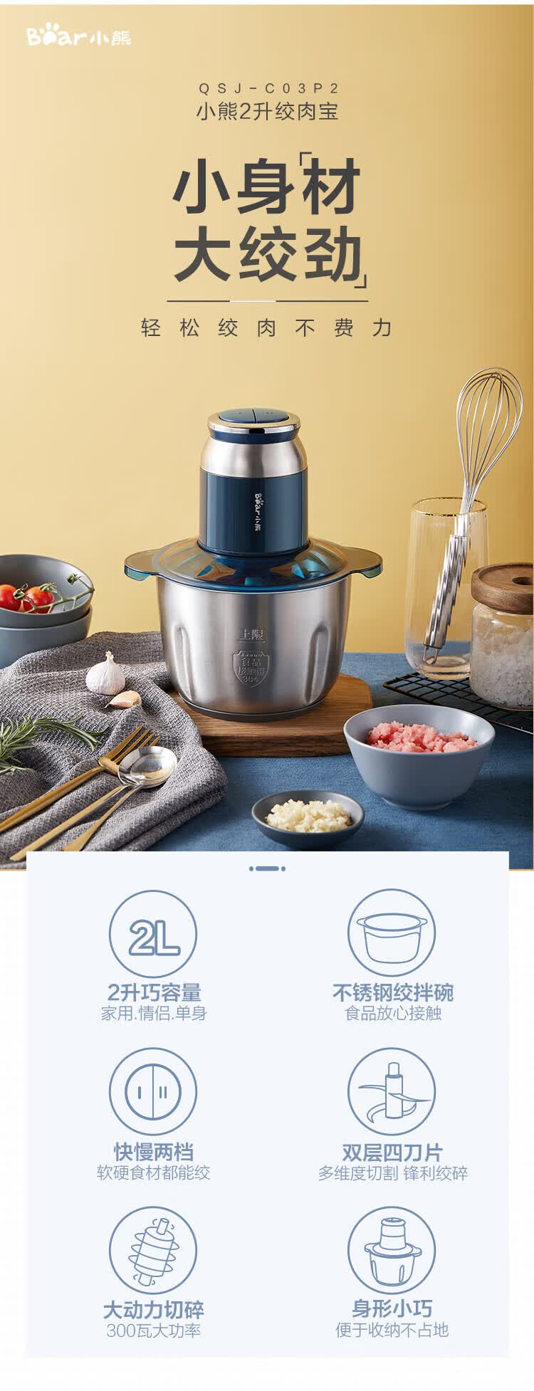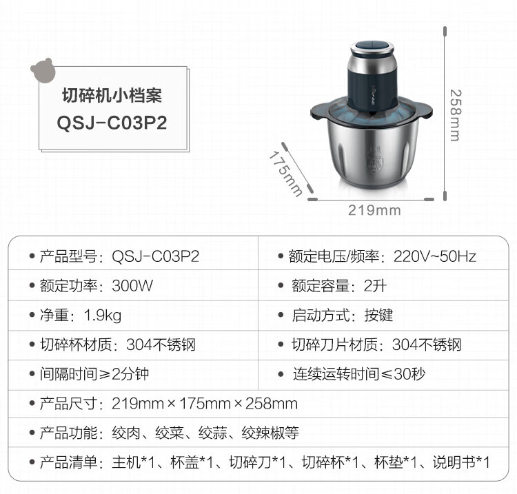 商品名称:小熊(Bear)绞肉机QSJ-C03P2 2L
