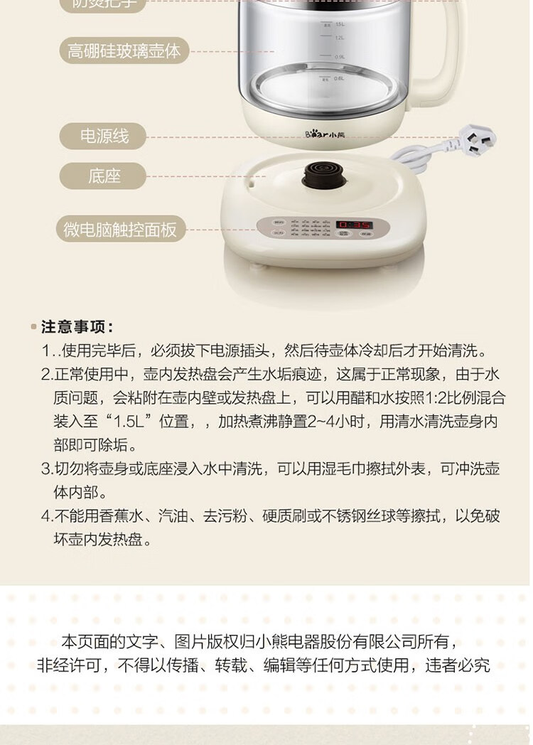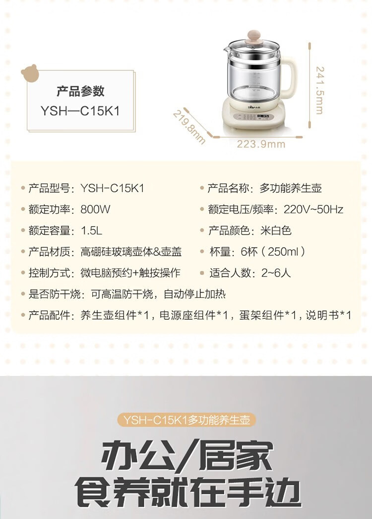 商品名称:小熊 养生壶 1.5L YSH-C15K1