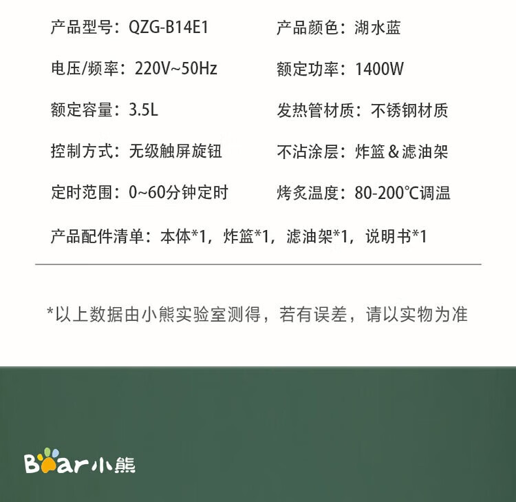 商品名称:小熊 空气炸锅 QZG-B14E1 3.5L