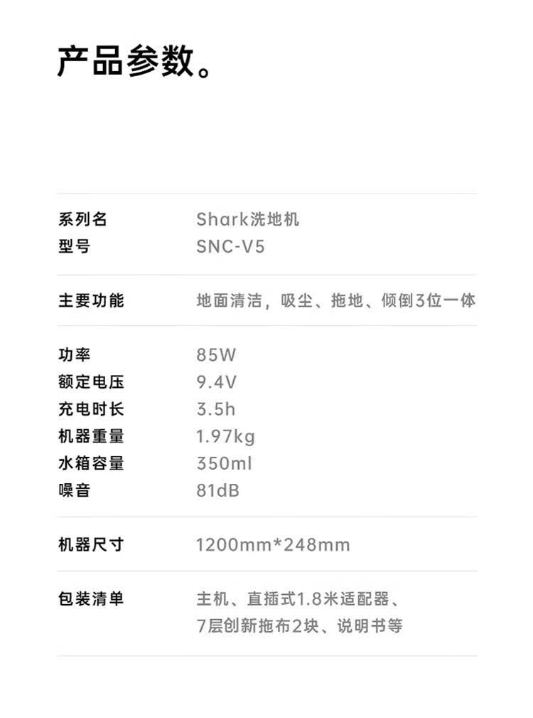 商品名称:shark鲨客 洗地机 V5
