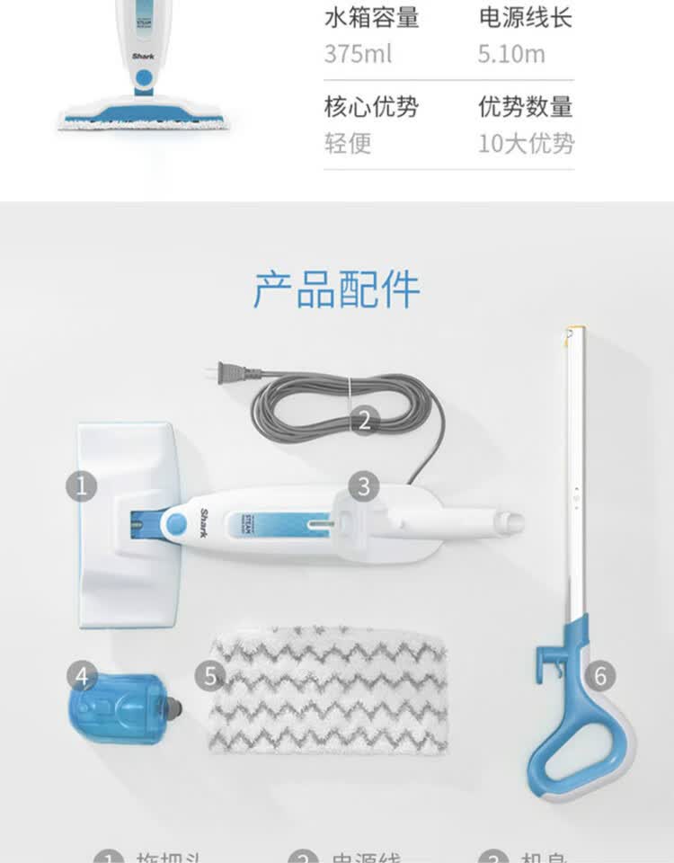 商品名称:鲨客 蒸汽除菌拖把 P2