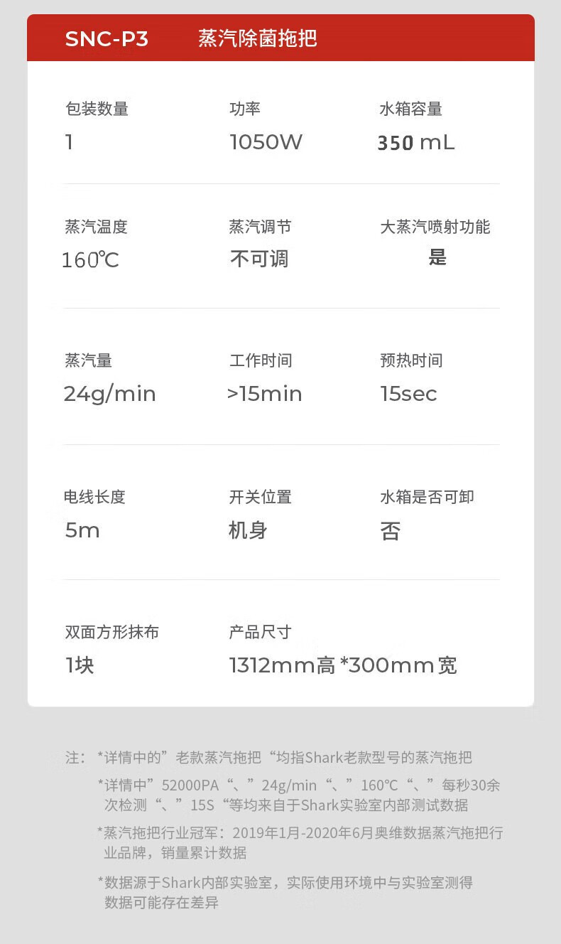 商品名称:shark鲨客 蒸汽除菌拖把 P3