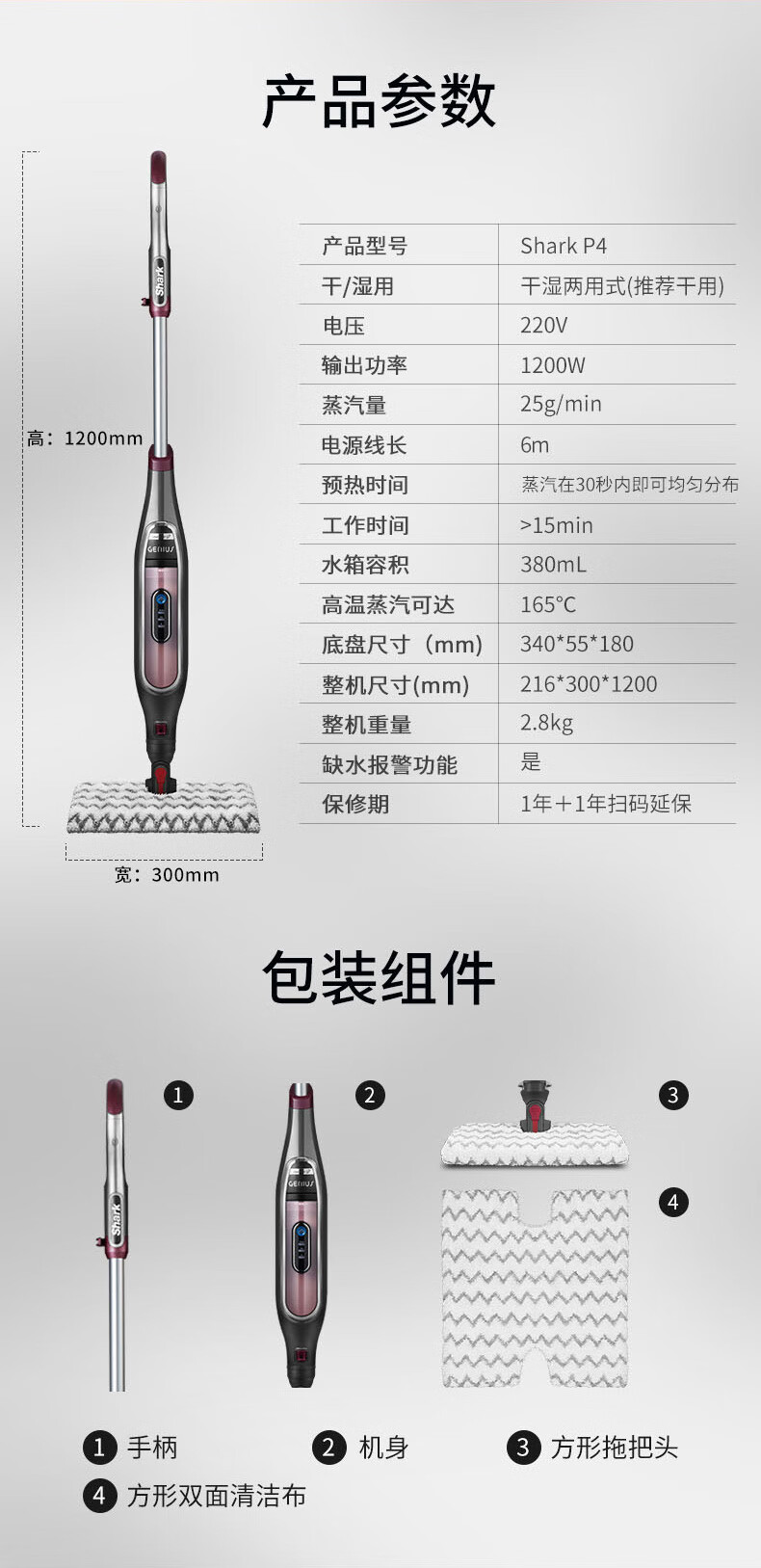 商品名称:shark鲨客 蒸汽除菌拖把P4