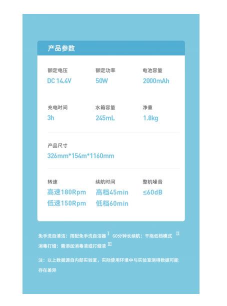 特色功能 :吸拖两用,干湿两用型,温度保护,杀菌除螨,杀菌消毒
