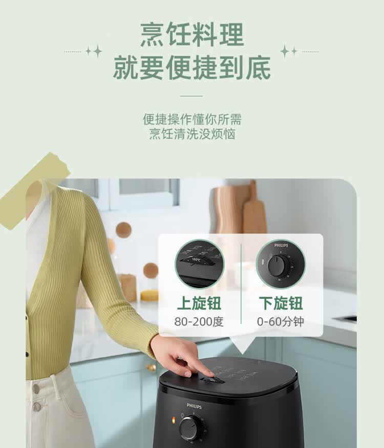 飞利浦(PHILIPS)空气炸锅 HD9100/80 3.7L