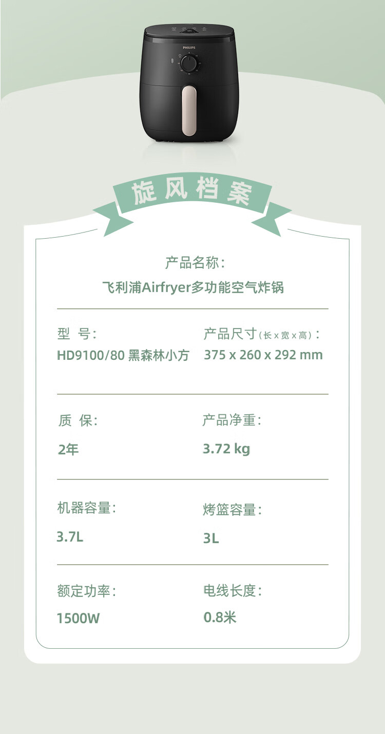 商品名称:飞利浦(PHILIPS)空气炸锅 HD9100/80 3.7L