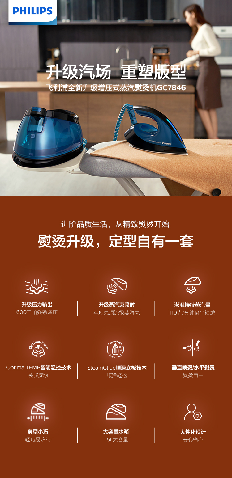 商品名称:飞利浦(PHILIPS)增压式蒸汽电熨斗 GC7846/88 1.5L