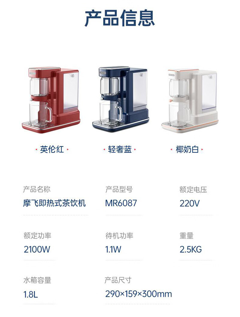 商品名称:摩飞(Morphyrichards)即热式茶饮机泡茶机养生壶多功能烧水一体饮水机MR6087