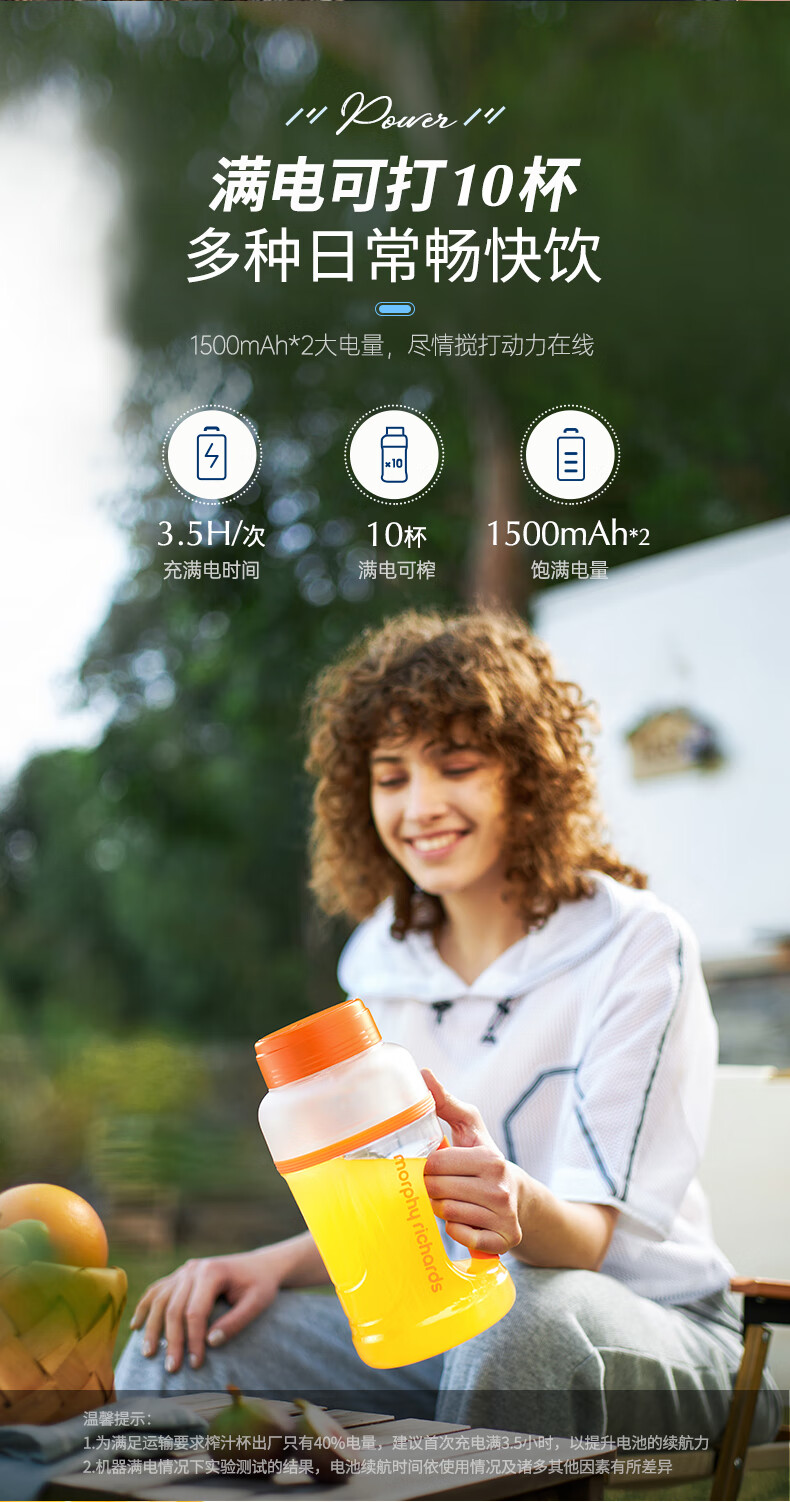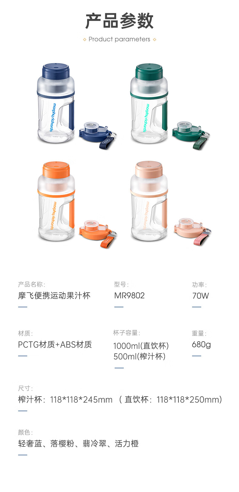 商品名称:摩飞(Morphyrichards)便携式运动果汁杯网红充电小胖吨MR9802