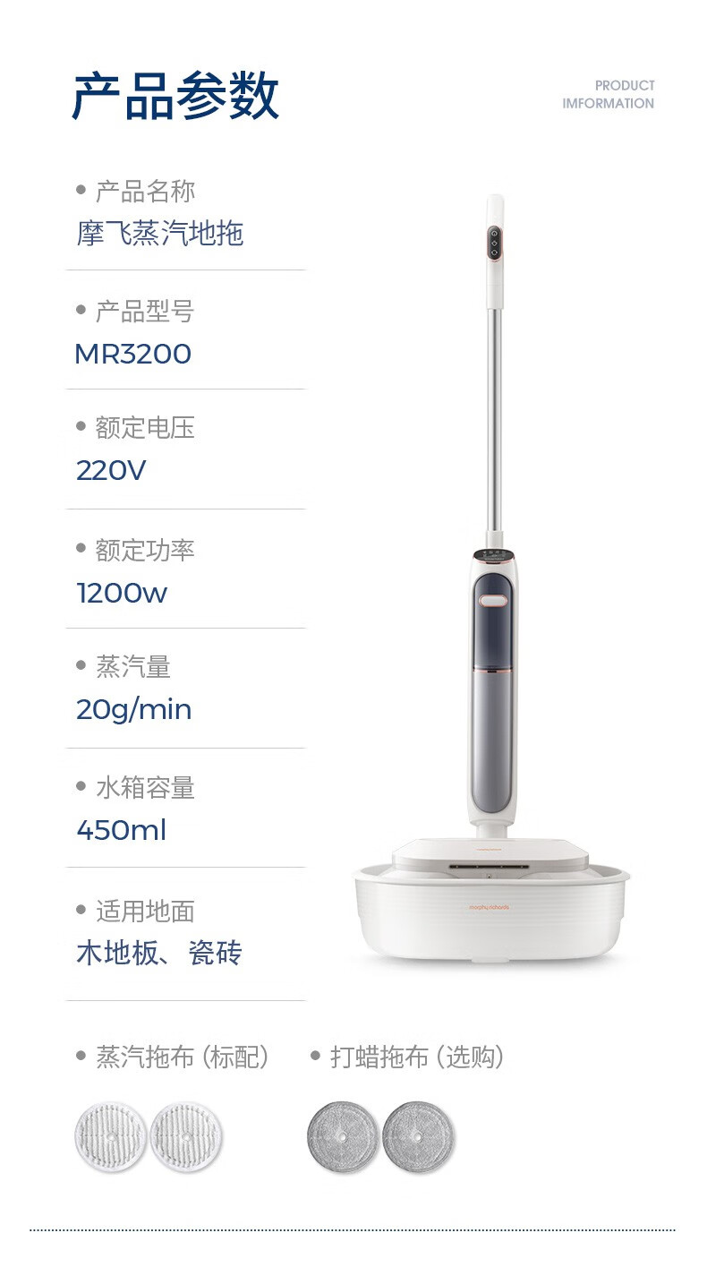 商品名称:摩飞(Morphyrichards)电动蒸汽拖把清洗机MR3200白色