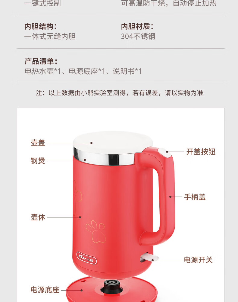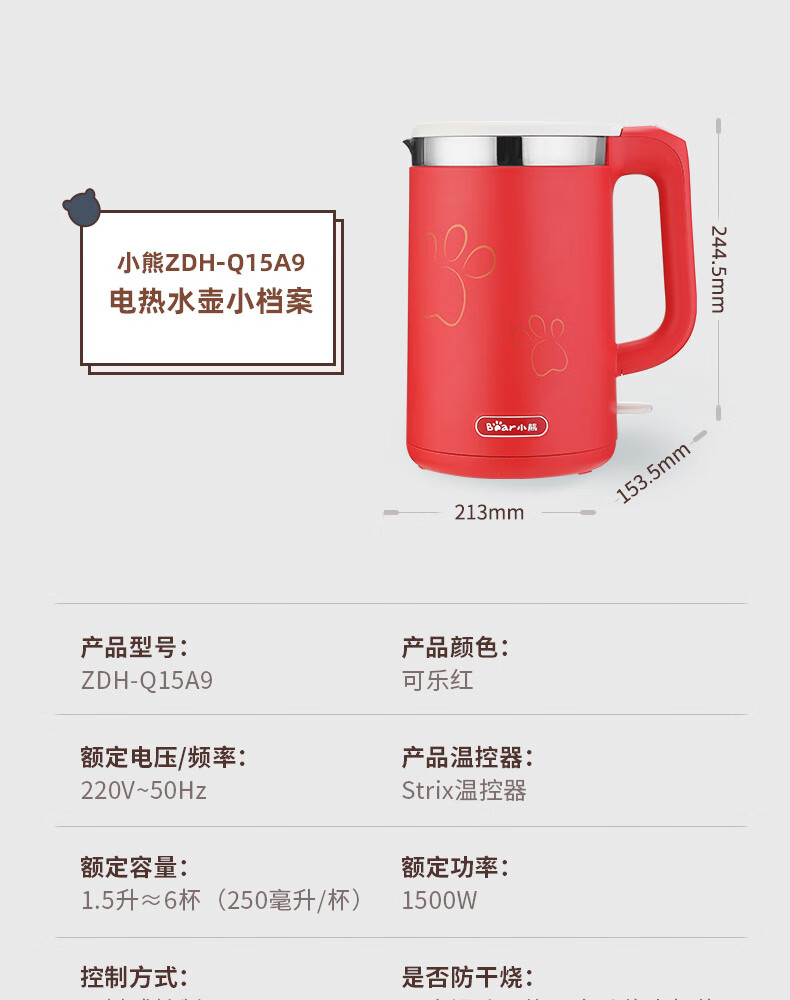 商品名称:小熊(Bear)电热水壶 ZDH-Q15A9