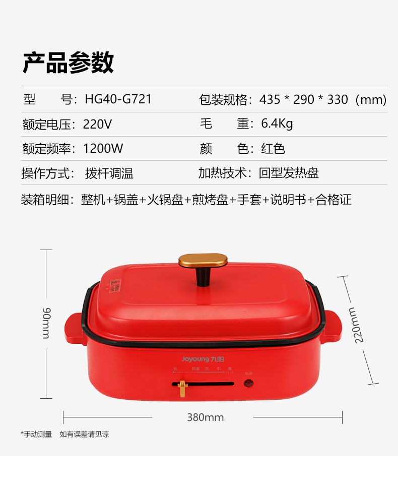 商品名称:九阳(Joyoung)电火锅 HG40-G721 4L