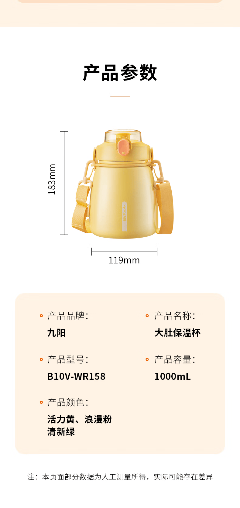商品名称:九阳(Joyoung)大肚保温杯系列 B10V-WR158 1L