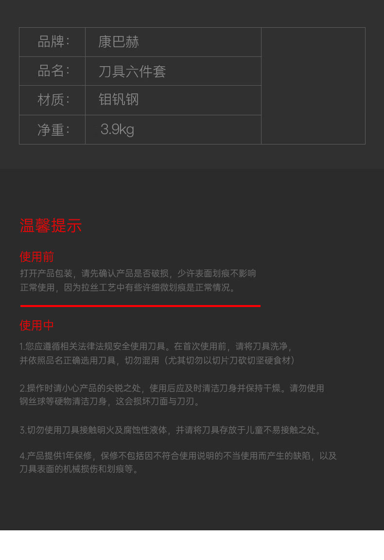 商品名称:康巴赫 勋章系列刀具6件套(黑色) KDI-T6