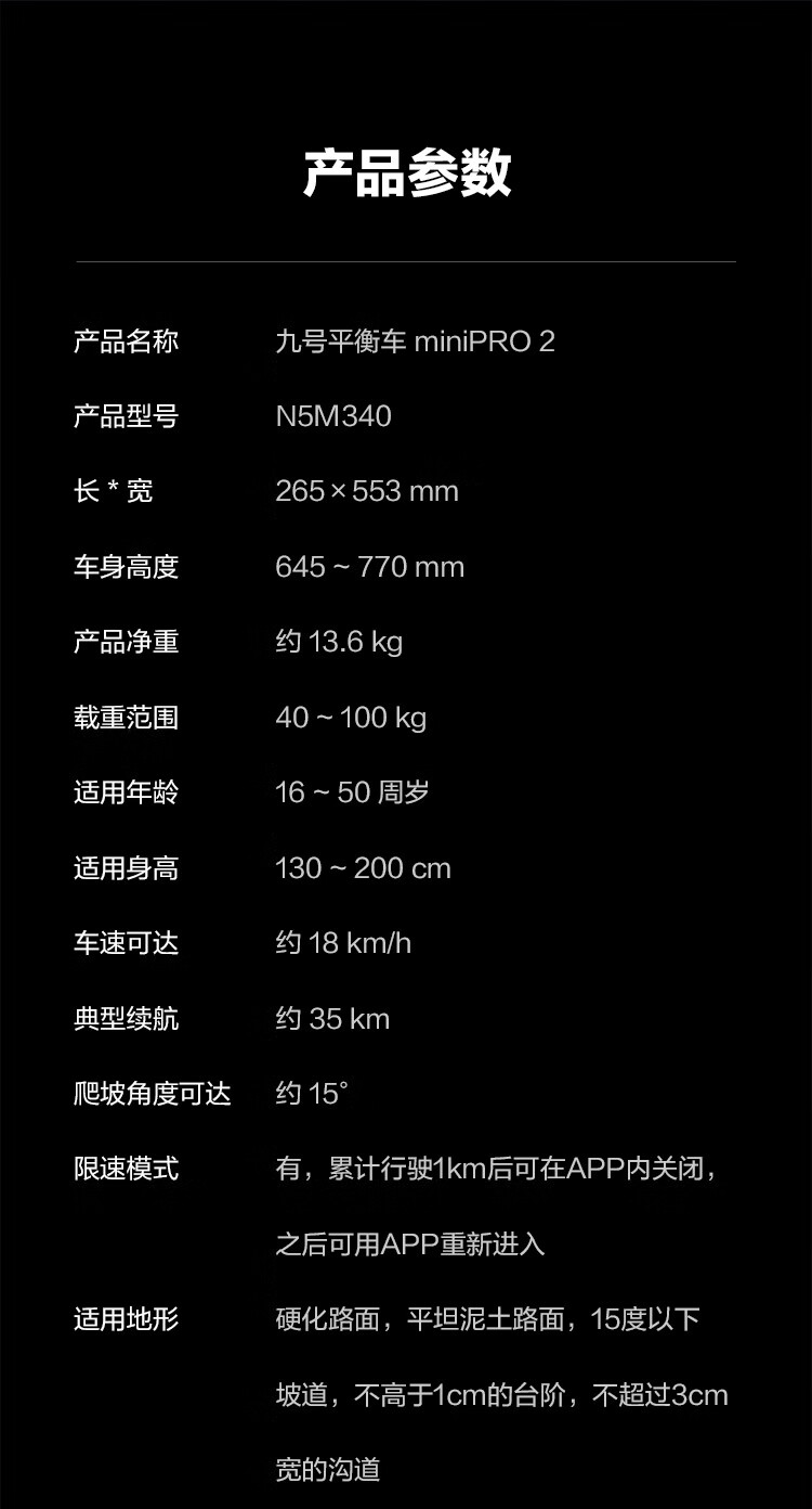 九号(Ninebot) miniPro2 平衡车