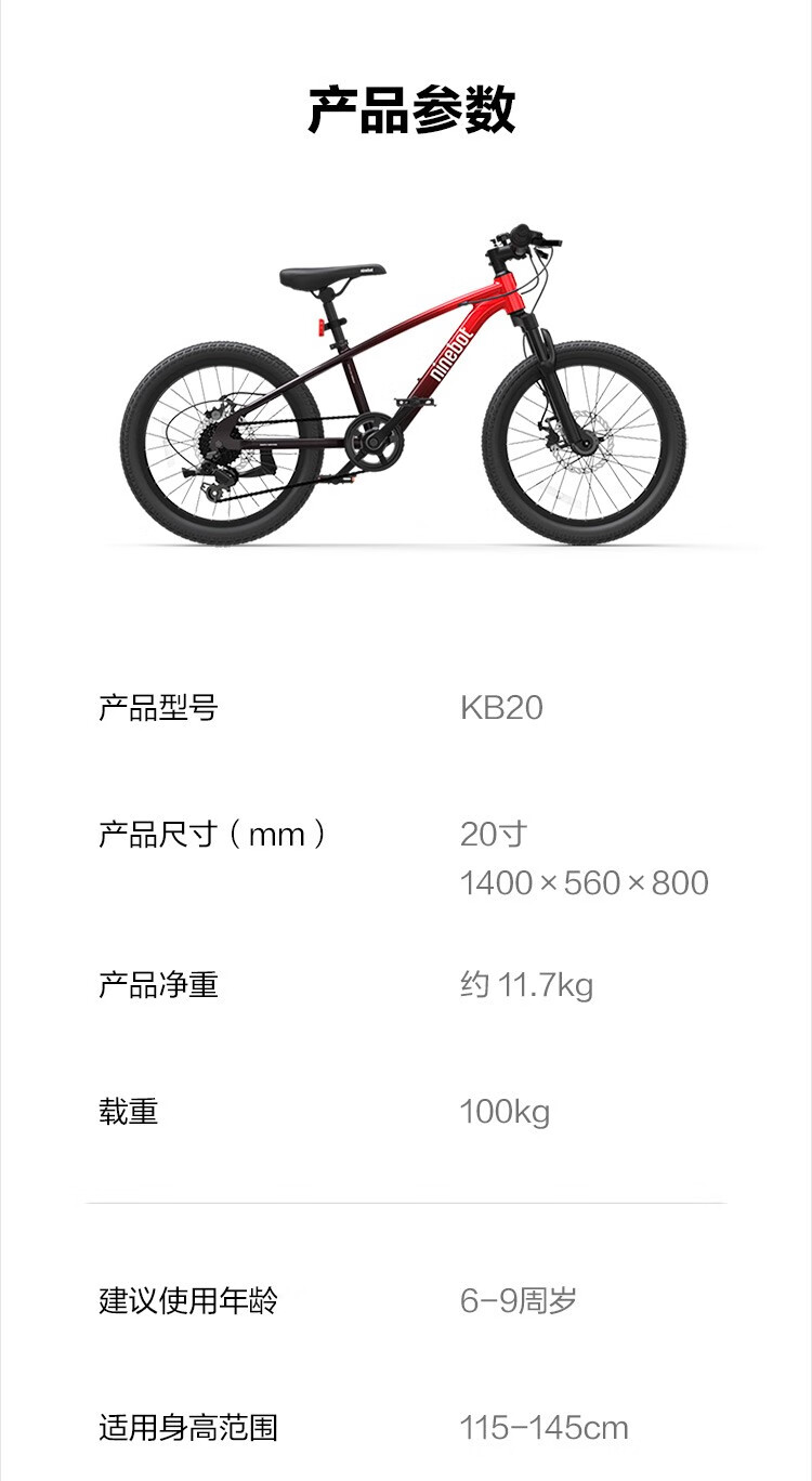 商品名称:九号(Ninebot) 20英寸 童车(6-12岁)