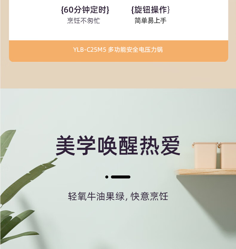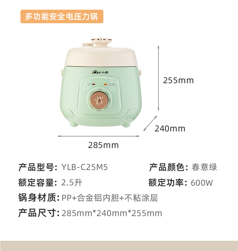 商品名称:小熊(Bear) 多功能安全电压力锅 YLB-C25M5