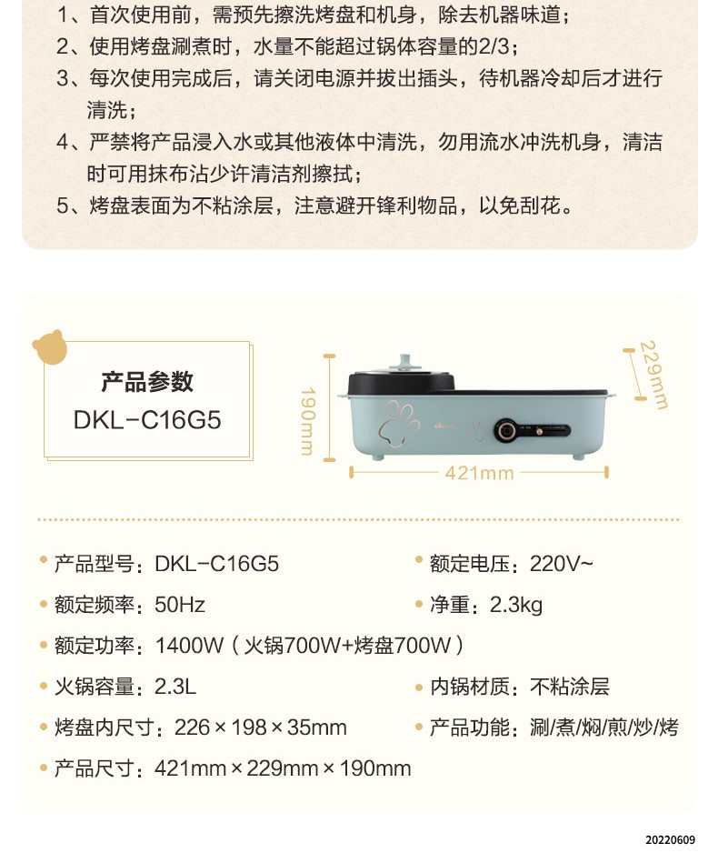 商品名称:小熊(Bear) 电烤炉 DKL-C16G5