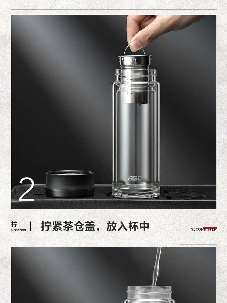 爱仕达(ASD)时光系列·双层玻璃简约杯 RWB35B5Q 350ml