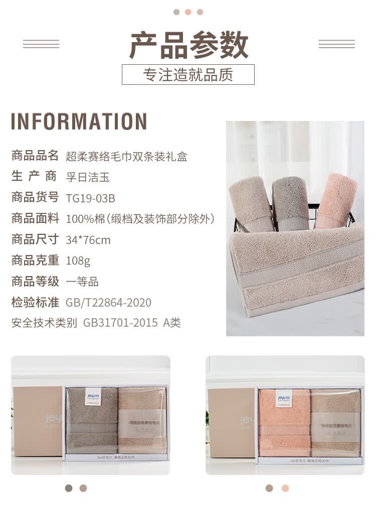 商品名称:洁玉(Jeyu)超柔赛格毛巾双条装礼盒 TG19-03B