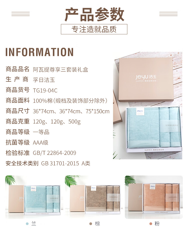 商品名称:洁玉(Jeyu) 阿瓦提超低捻尊享三套装礼盒 TG19-04C