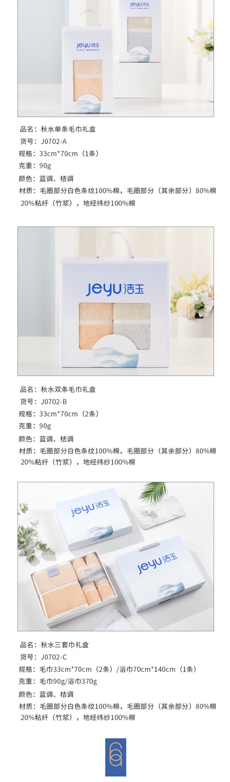 商品名称:洁玉(Jeyu) 秋水双条毛巾礼盒 J0702-B