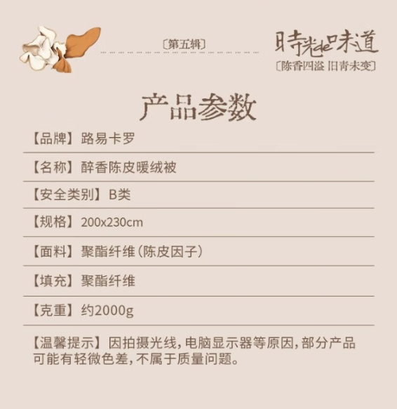 商品名称:路易卡罗 LK-8841醉香陈皮暖绒被2000g 200x230cm