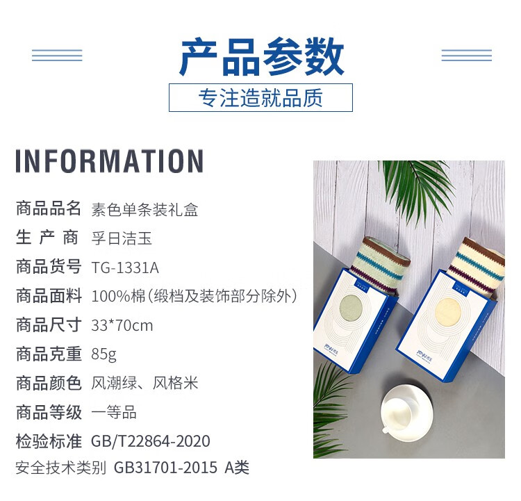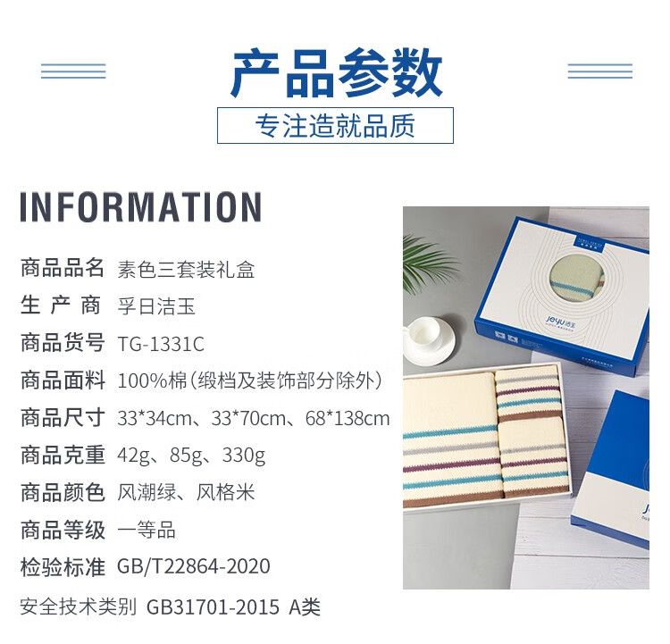 商品名称:洁玉(Jeyu)素色双条装礼盒 TG-1331B