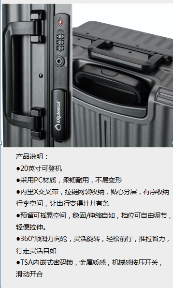 商品名称:外交官 DS-13090 外交官铝框拉杆箱20英寸可登机