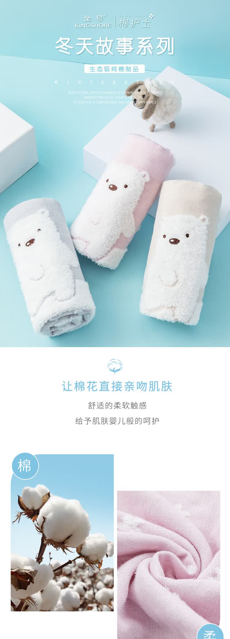 商品名称:金号(KING SHORE)冬天故事毛巾礼盒两条装 MD1041WH-2 随机颜色