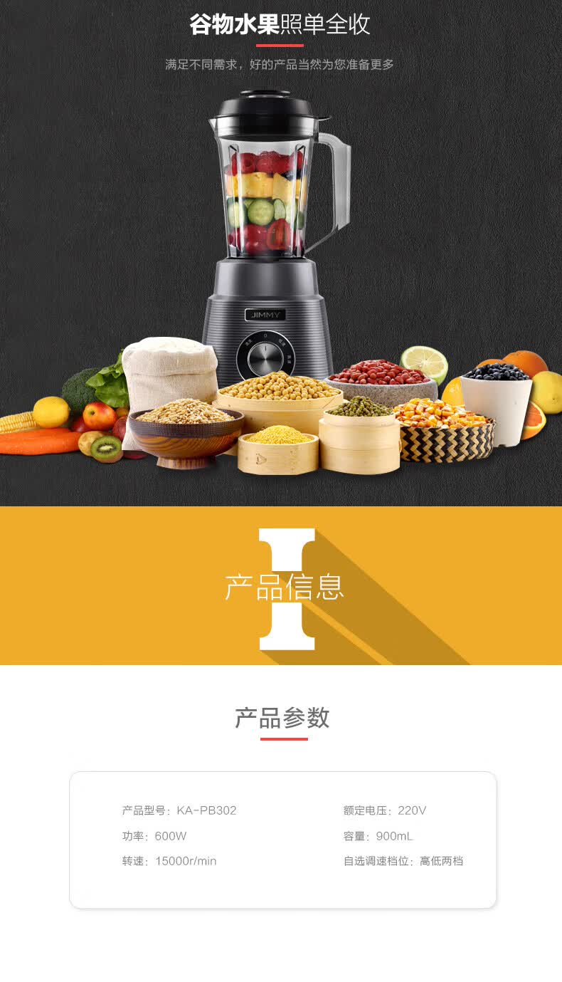 功能 :破壁磨粉,快速出浆
