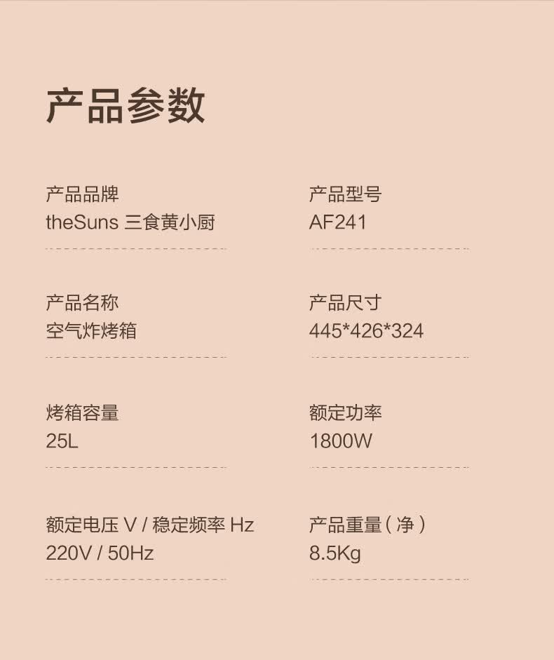 商品名称:三食黄小厨 AF241 空气炸电烤箱 25L