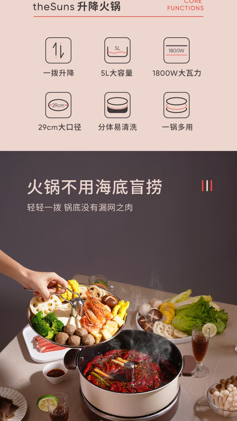 商品名称:三食黄小厨 多功能升降料理锅 LP501 5L