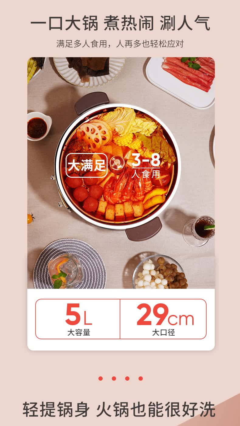 三食黄小厨 多功能升降料理锅 LP501 5L