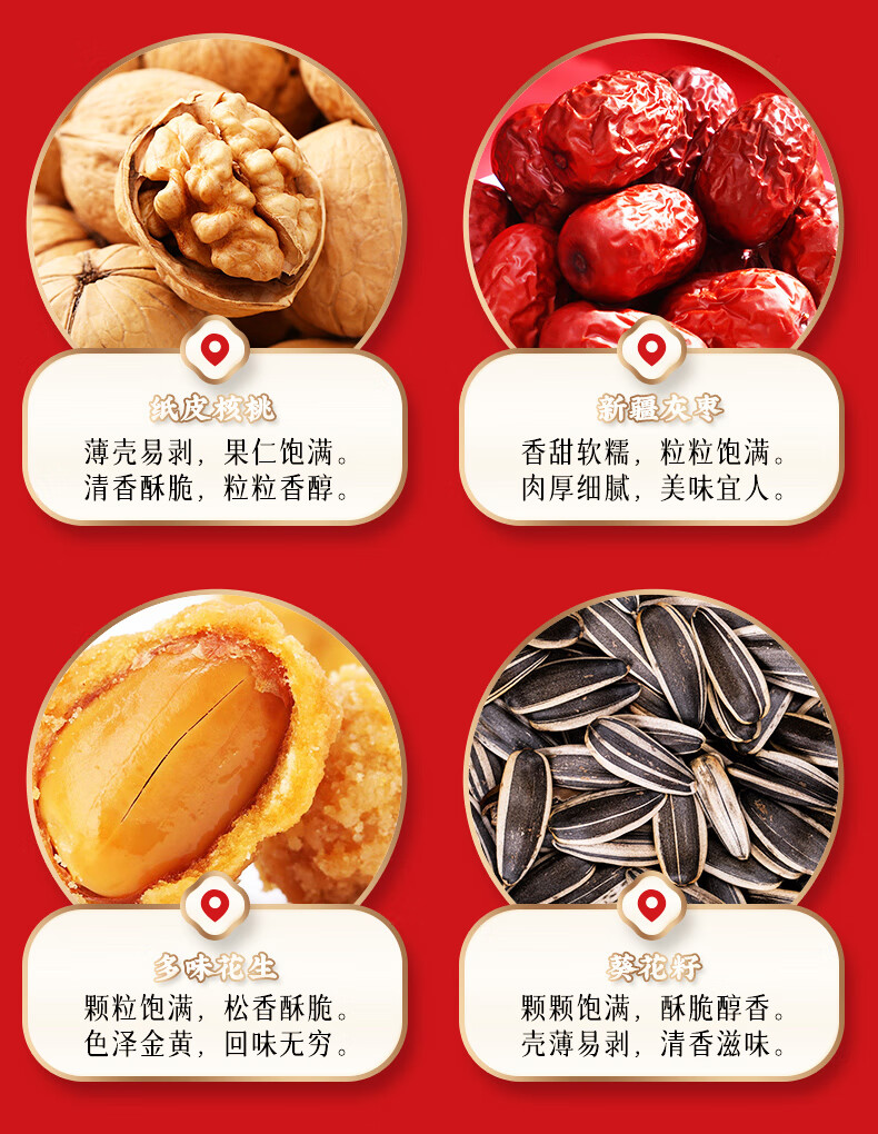 商品名称:三只松鼠春节新年小美礼包(袋装坚果礼)1337g+240ml