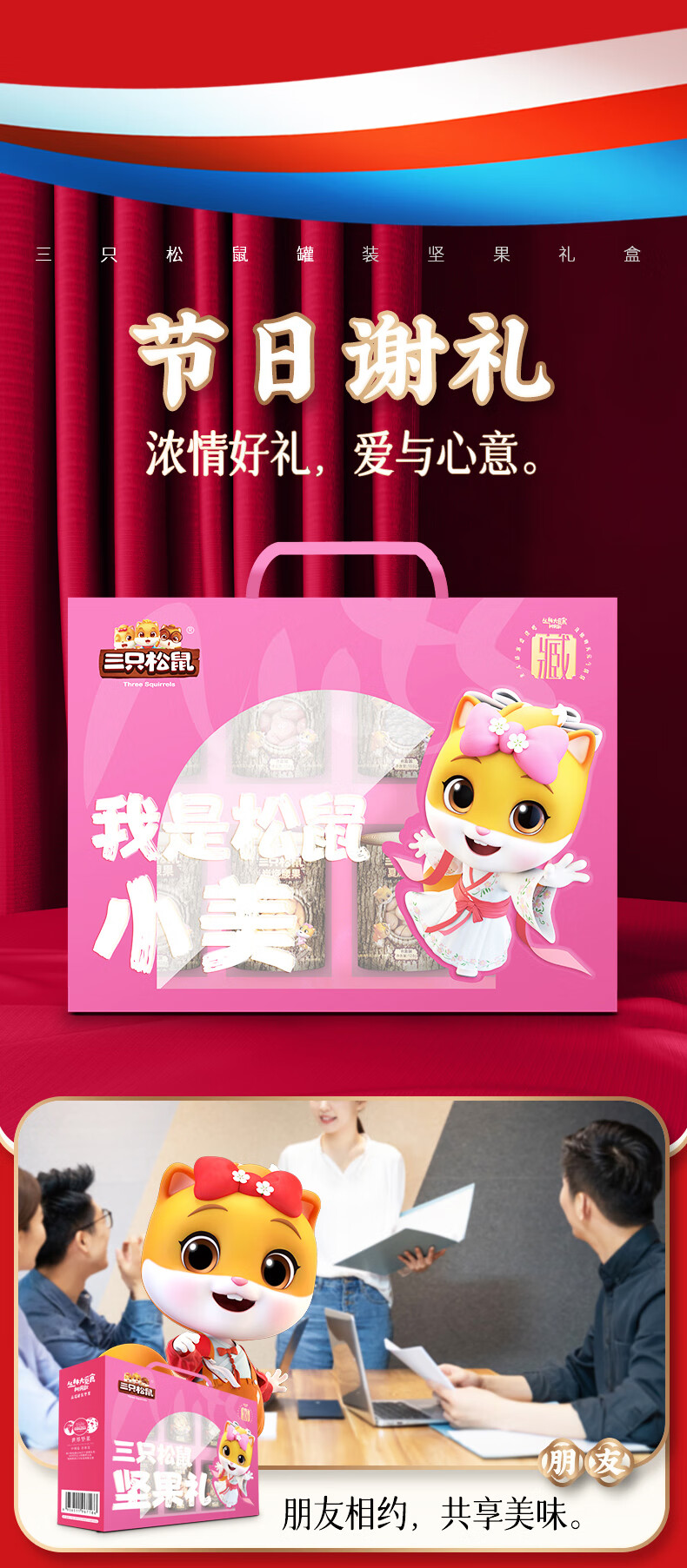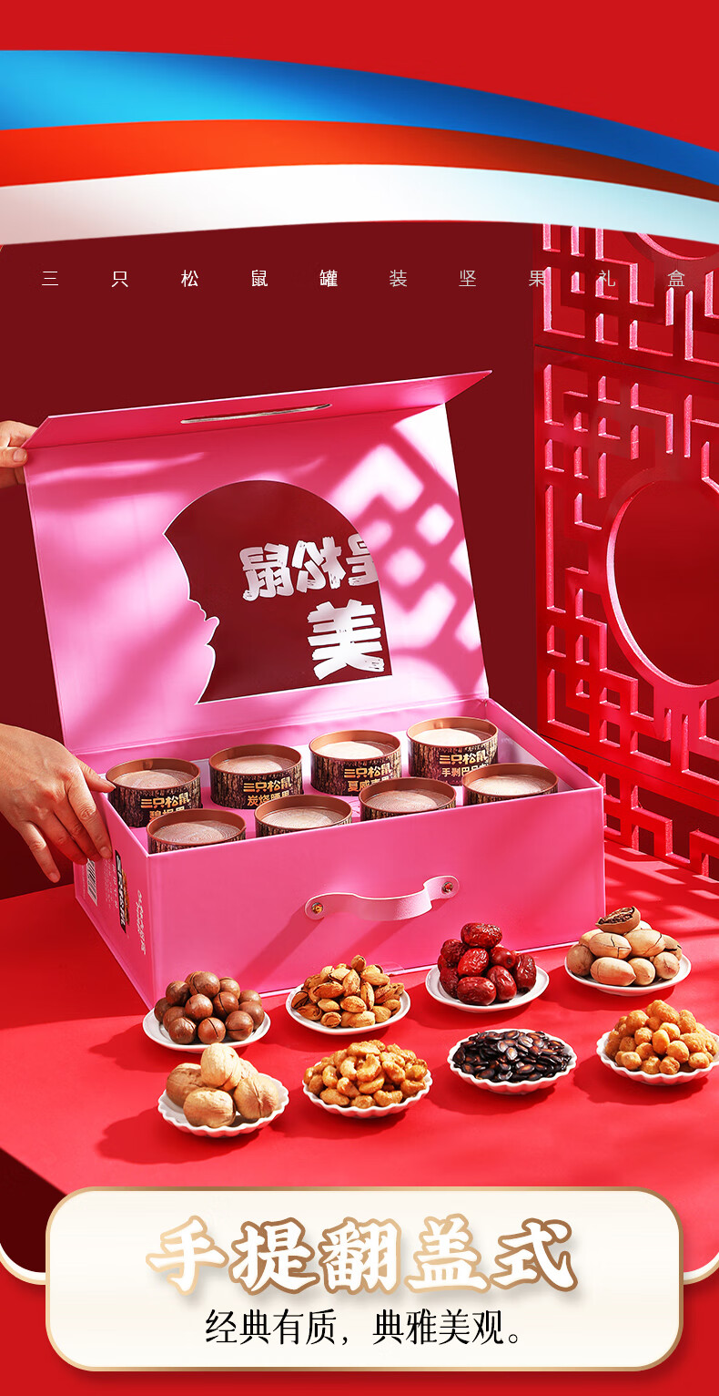 三只松鼠春节新年小美礼包(袋装坚果礼)1337g+240ml