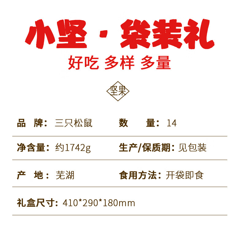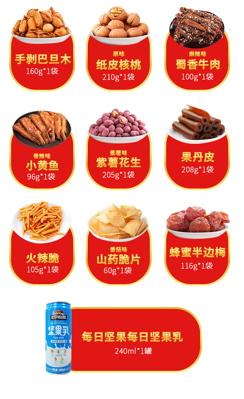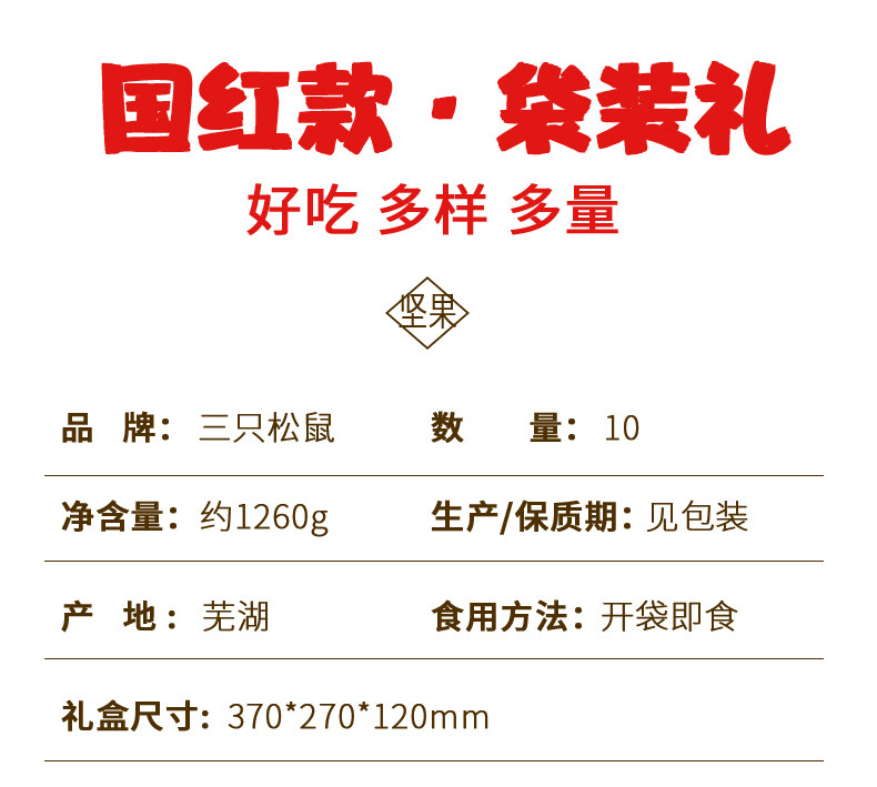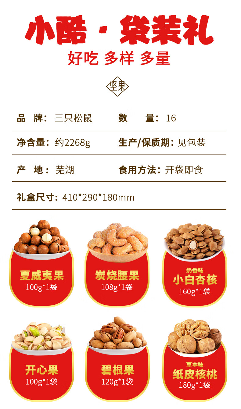 商品名称:三只.松鼠袋装礼盒系列大礼包小酷礼包2028g+240ml