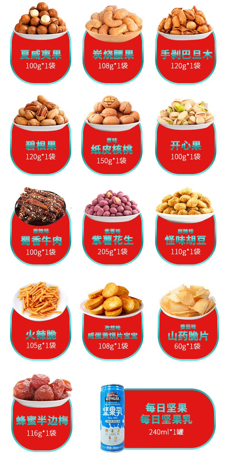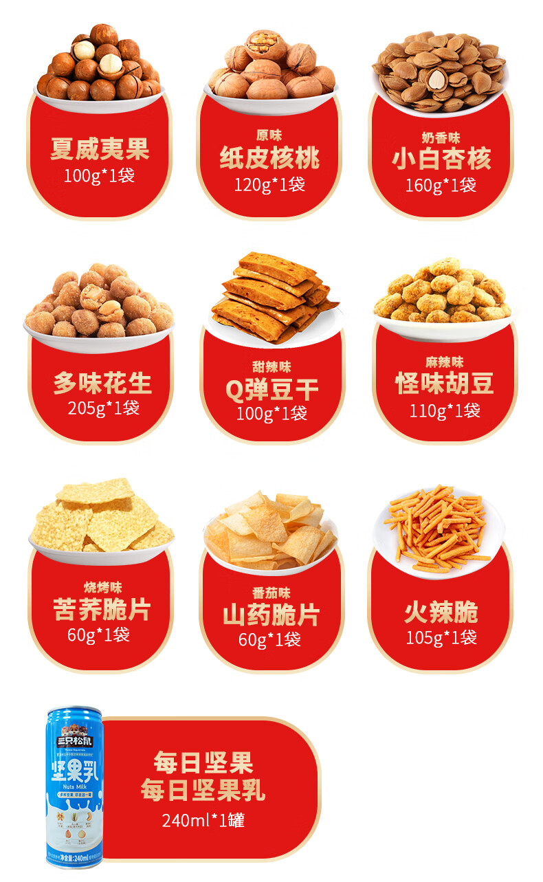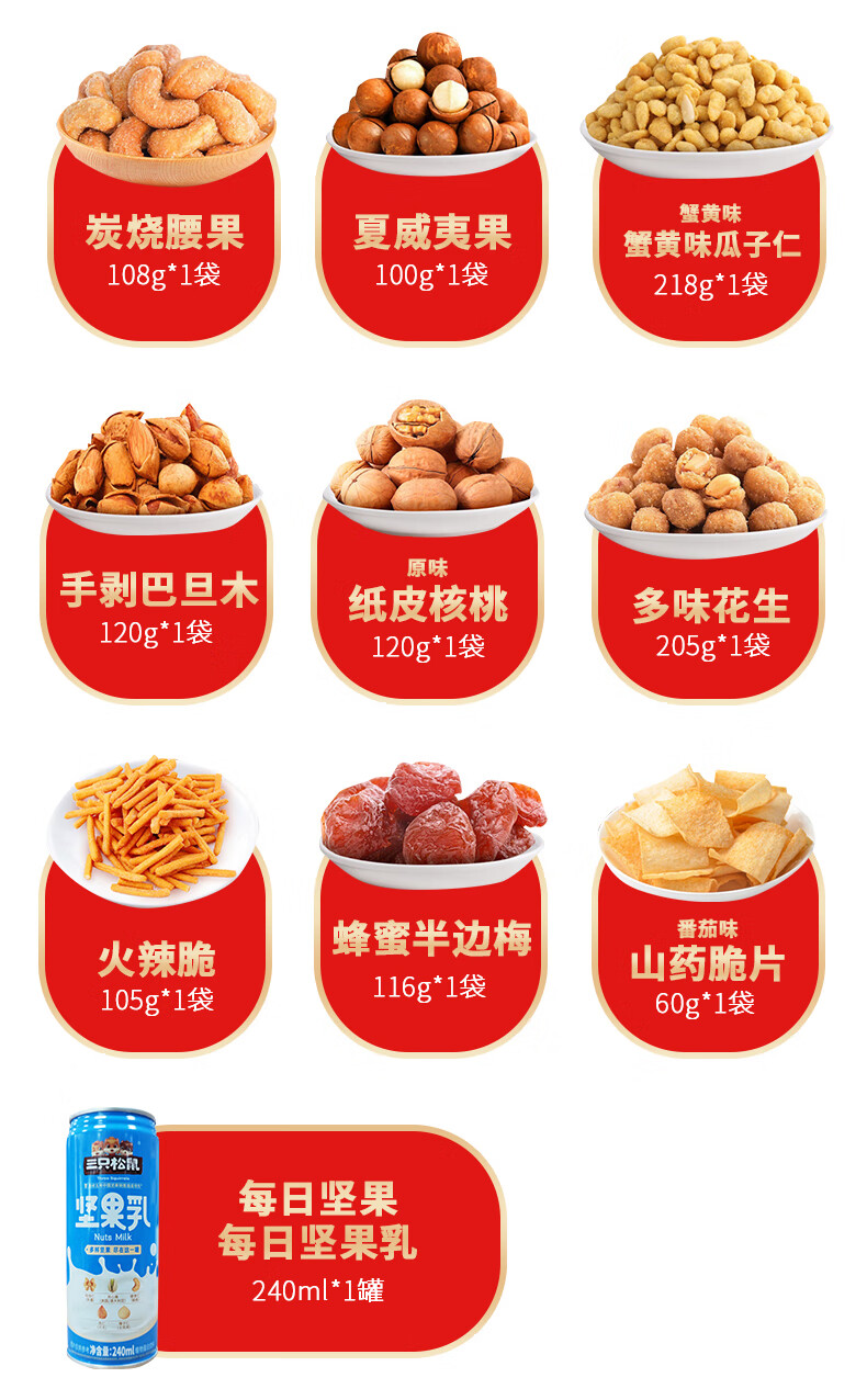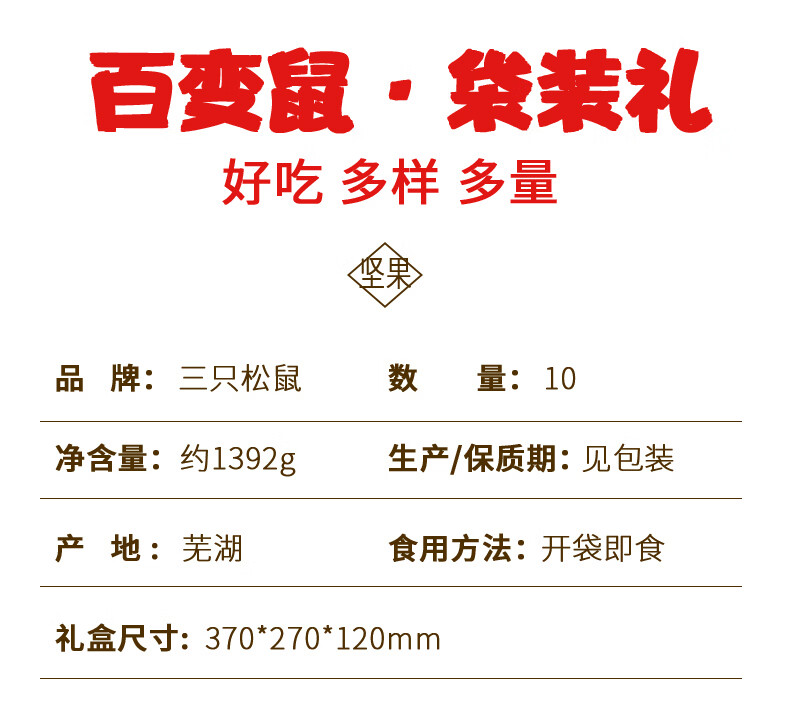 商品名称:三只.松鼠袋装礼盒系列大礼包小酷礼包2028g+240ml