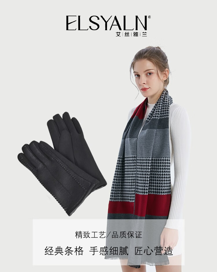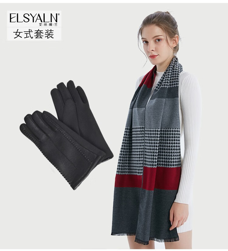 艾丝雅兰 A-ZH2007 尚品围巾手套套装 女/千鸟红围巾+黑色手套